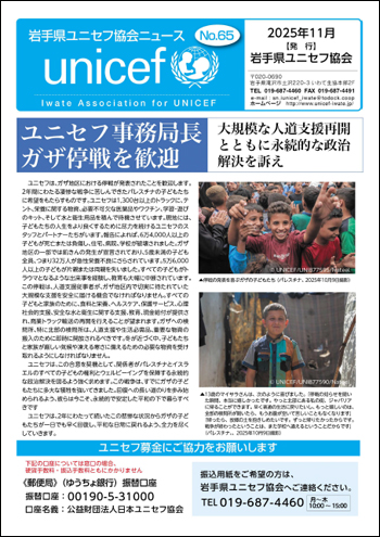 <「岩手県ユニセフ協会ニュースNo.65:11月1日発行・年4回発行」>