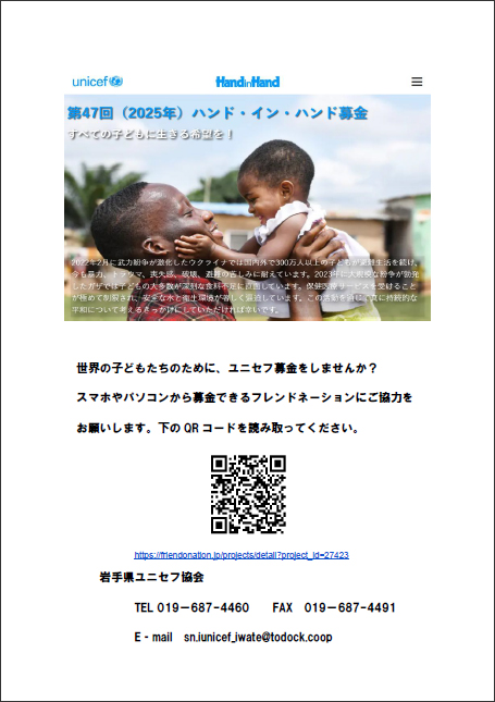 岩手県ユニセフ協会「ユニセフ ハンド・イン・ハンドinいわて2025」案内(第1報-2025年11月17日)
