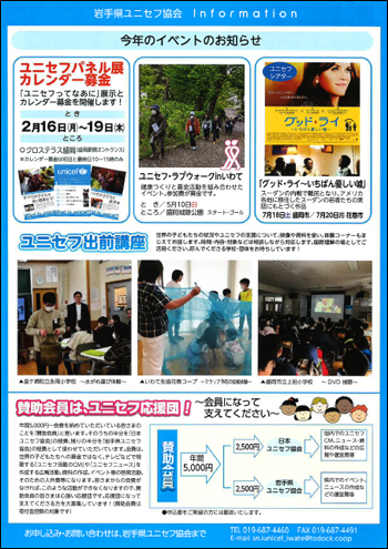 岩手県ユニセフ協会 事務局 電話:019-687-4460(月~木 10時~15時)